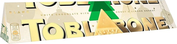 Toblerone White Chocolate, Honey and Almond Nougat Large Gift Bar, Made with Swiss Milk, Christmas Treat for Gifting, or Sharing, 340 g (Pack of 1)
