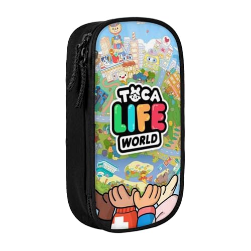 YINGD Toca Life Boca Game Pencil Case Large Capacity Double-Layer Pen Bag School Stationery Pouch Organizer Office Supplies Pencase for Kids Adult