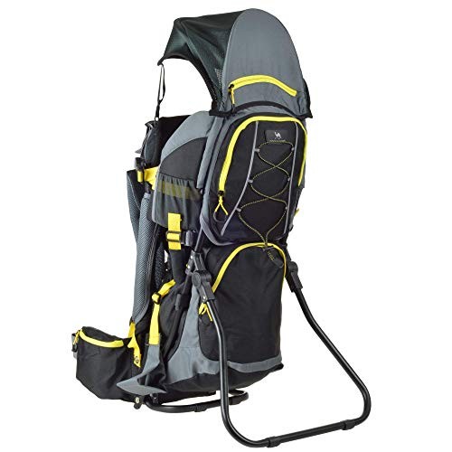 DROMADER Baby Carrier Backpack - Toddler Hiking Backpack with Sun Canopy, Rain Cover, Insulated Pouch, Changing Mat & One-Hand Foldable Frame - Black and Yellow