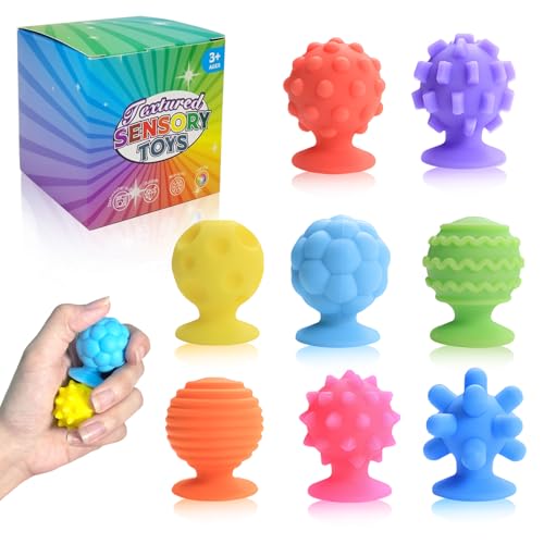 Baby Bath Toys Sensory Fidget Toys for 1 2 3 4 5 6 Year Old, 8 pcs Baby Suction Toys, Silicone Toys Mold Free Bath Toys, Sensory Toys for Toddler Travel and Bath Time