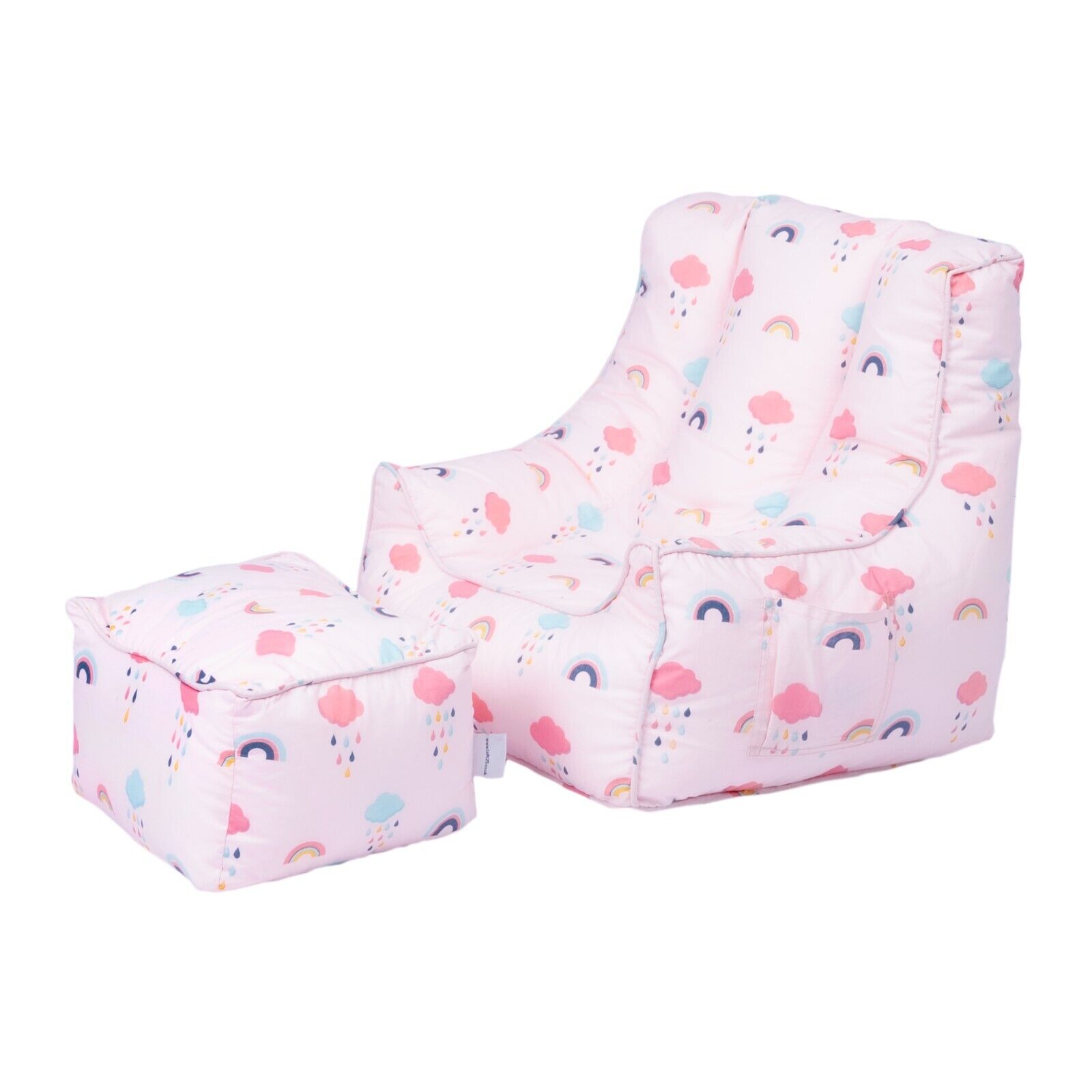 Toddler Bean Bag Chair Playing Beanbag Armchair Printed Pouffes with Footstool