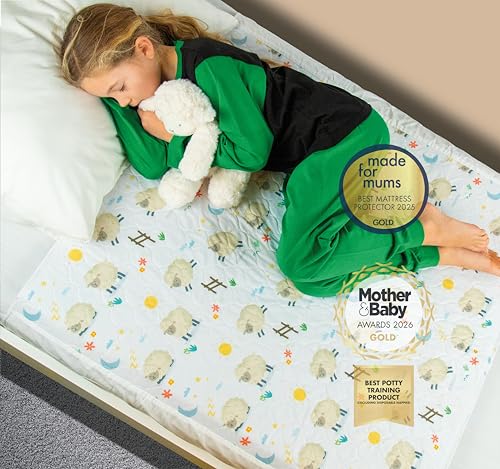 Bedwetz Potty Training Bed Pads | 100% Waterproof Mattress Protector | Bedwetting Sheets, size fits Single & Toddler Beds | Non Slip Mat with Side Wing Tucks | UK Brand | Lamb