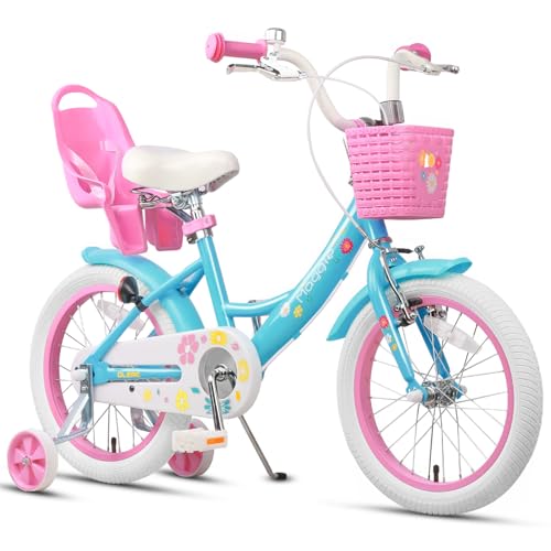 Glerc Maggie 16 Inch Kids Bike for 4 5 6 7 Years Old Little Girls Toddler Bicycles with ith Doll-Seat & Basket & Stabilisers for Gift, Blue