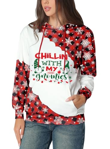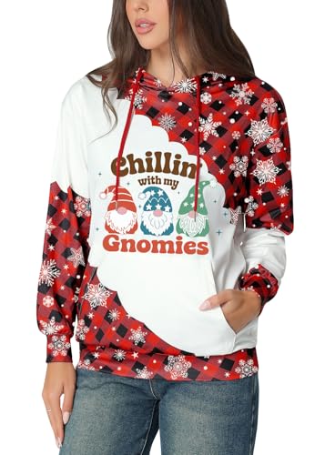 Glimnerize Christmas Womens Toddler Clothes Hoodie Christmas Jumper Gnome Funny Graphic with Pocket Sweatshirt B2 XL