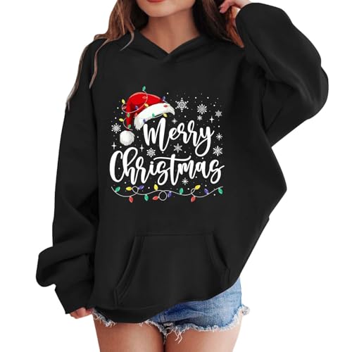 Hooded Christmas Sweatshirt Kids Christmas Jumper Xmas Sweatshirt Jumpers Cute Pullover Toddler Xmas Jumper Winter Long Sleeve Santa Top Children Clothes Black