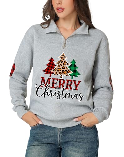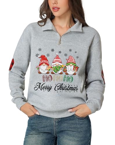 Glimnerize Christmas Womens Toddler Clothes Sweatshirt Gnome 1/4 Zip Standing Collar Funny Graphic Christmas Jumper Hoodie Grey-A4 M
