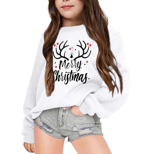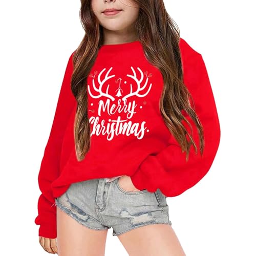 Girls Christmas Jumper Christmas Jumpers for Kids Sweatshirt Xmas Jumpers Long Sleeve Tops Cotton T-Shirts Toddler Crew Neck Casual Winter Clothes Age 3-14 Years