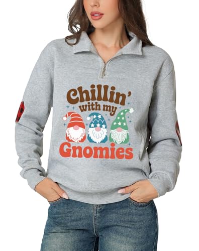 Glimnerize Christmas Womens Toddler Clothes Sweatshirt 1/4 Zip Standing Collar Gnome Funny Graphic Christmas Jumper Hoodie Grey-B3 M