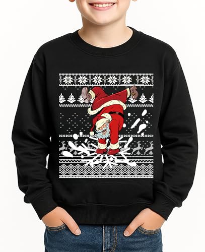 Glimnerize Christmas Kids Toddler Clothes Sweatshirt Santa Claus Crew Neck Unisex Christmas Jumper Sweater Black-B3 9-10Y(140)