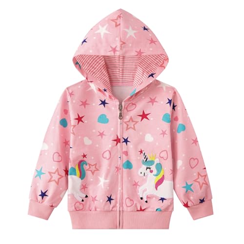 Smazero Girls Hoodie Kids Zip Up Unicorn Jumper Zipper Hooded Sweatshirt Toddler Long Sleeve Christmas Hoody Tops for Girls 3-8 Years Pink