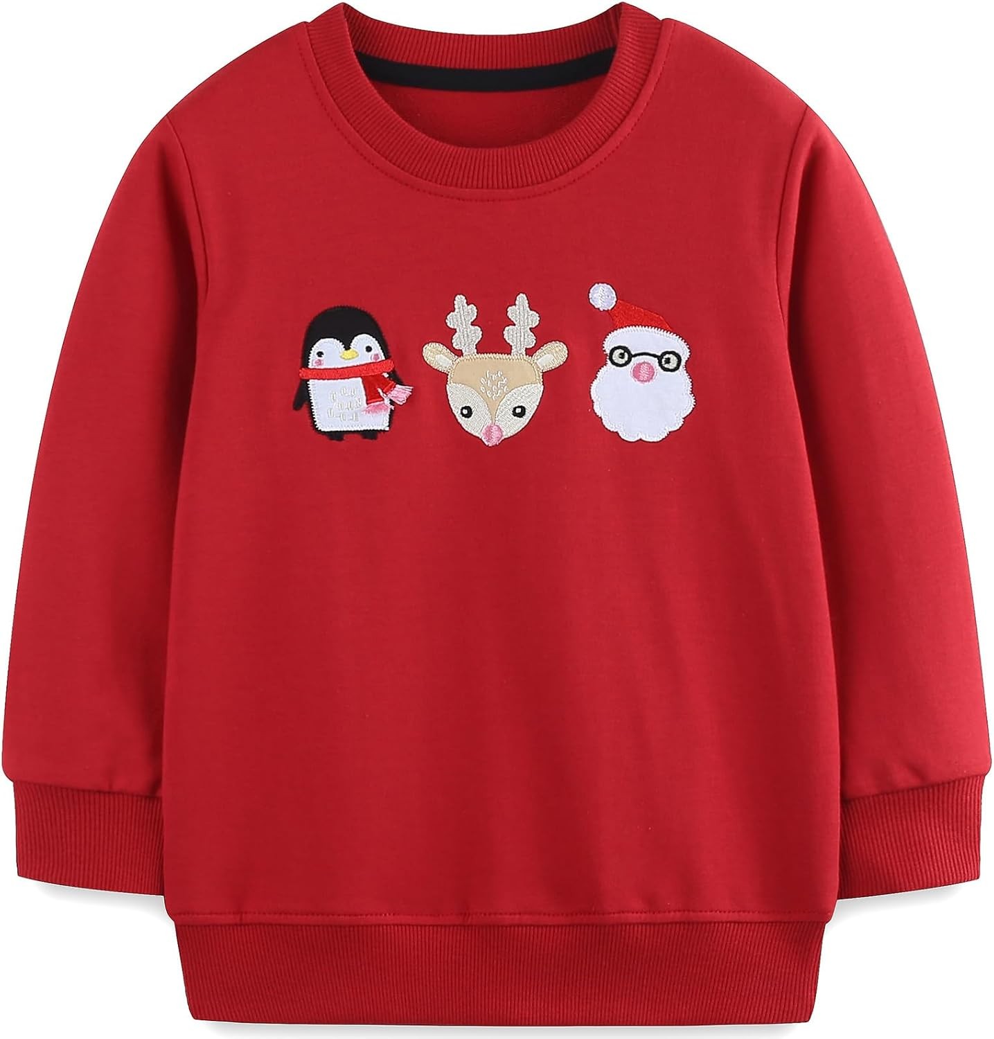 CM-Kid Christmas Sweatshirts for Kids Cute Reindeer Pullover Toddler Xmas Jumper Winter Long Sleeve Santa Top Children Clothes Age 1-7 Years