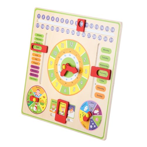 Brrnoo Toddler Calendar, Wooden Clock Toy Early Educational Multifunctional Learning Clock Date Season Weather Kids Children