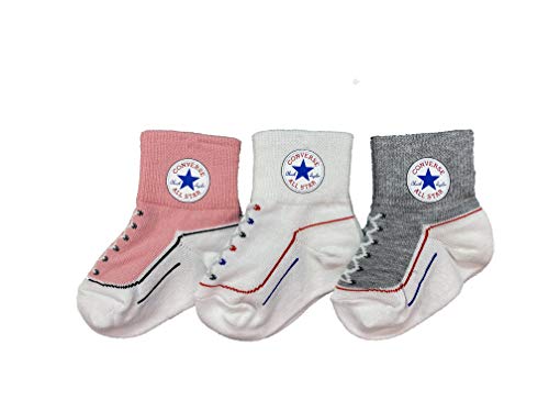 Converse Infant Toddler Socks 3 Pack (Pink(NC0172-AB5)/White/Grey, 6-12 Months)