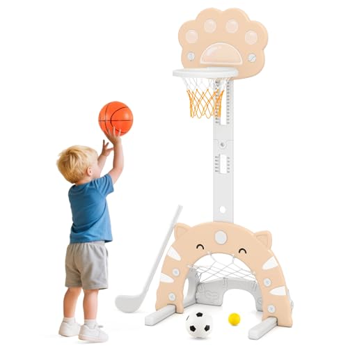Warmiehomy Basketball Hoop for Kids Indoor Basketball Hoop and Stand Toddler Basketball Hoop Outdoor Child Football and Basketball Set with Football Goal, Golf, Ring Toss, Story Player, Birthday Gift