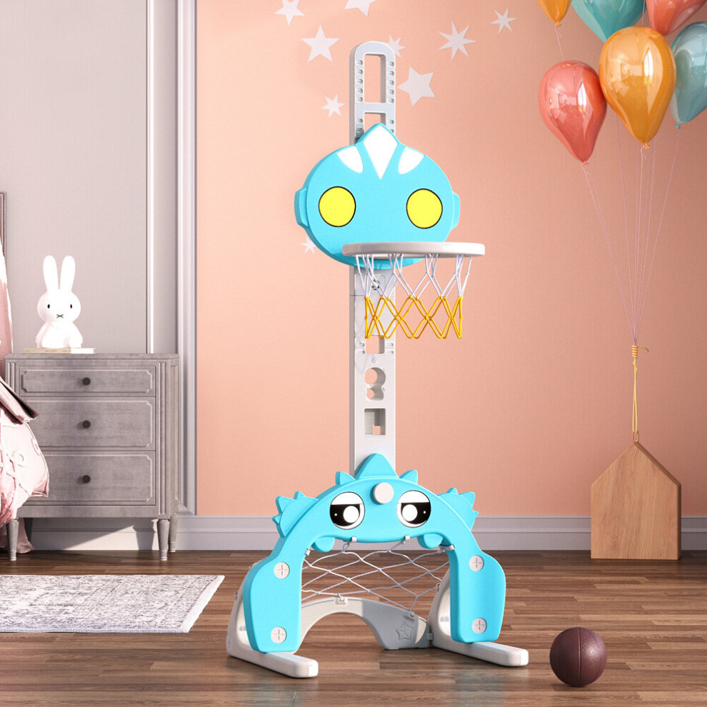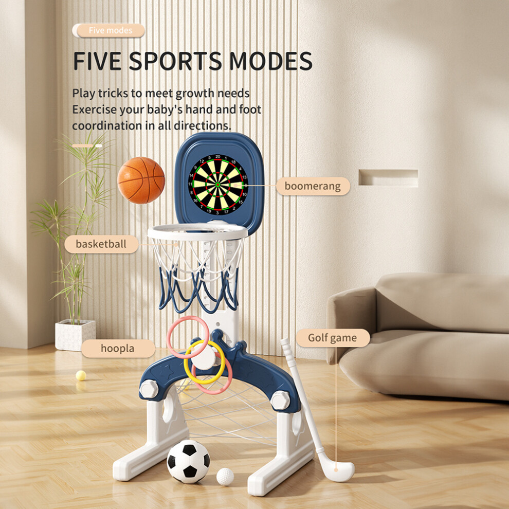 (blue) Adjustable Kids Basketball Hoop and Stand with Ring Toss and Toddler Football Goal, Indoor for Kids 3-in-1 Sports Activity Center