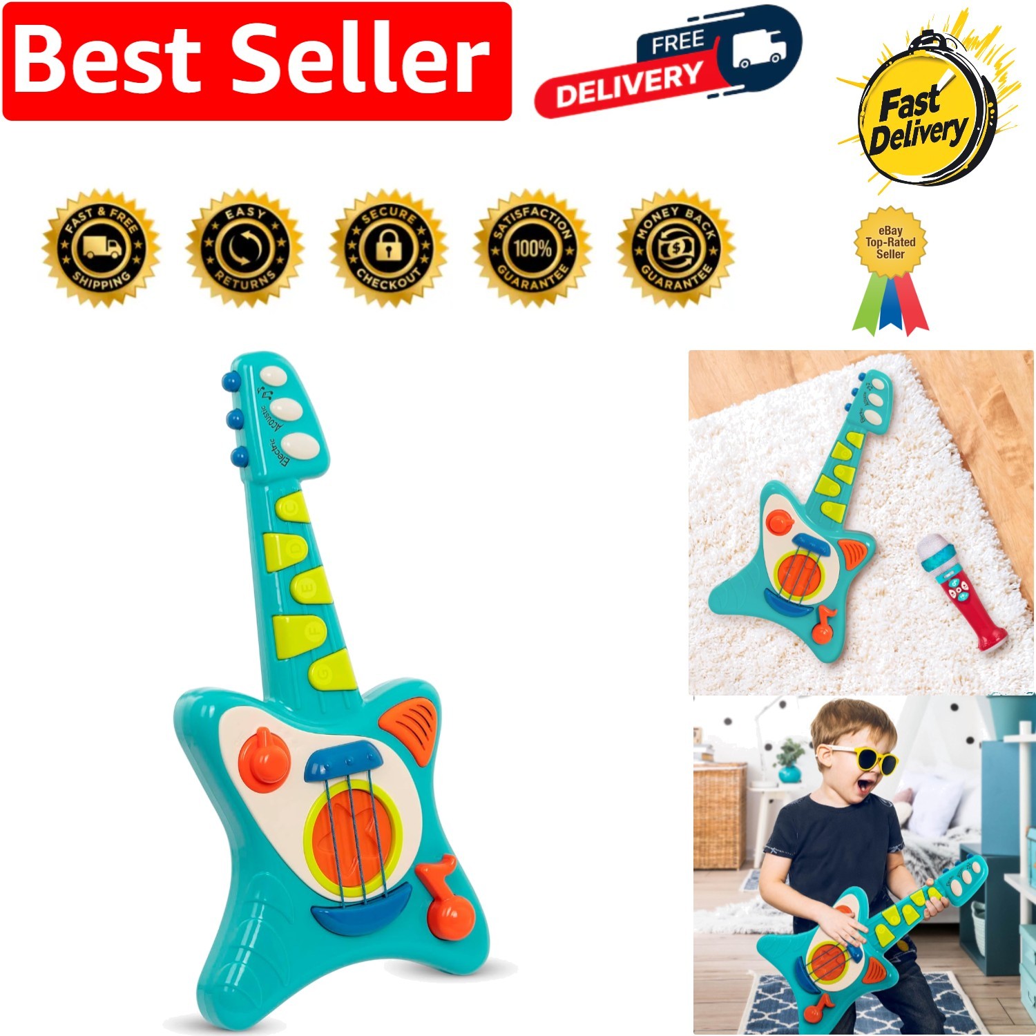 Colorful Toddler Guitar Toy - Acoustic & Electric Modes + Songbook for Kids