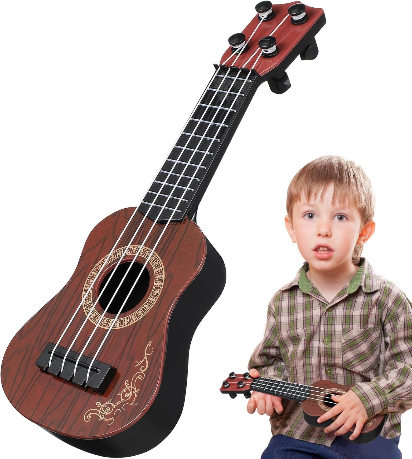 Ukulele for Kids 4 String Toddler Guitar Toy with Classic Wood Grain Musical Instrument for Preschoolers Kindergarten Kids Ukulele Gift for Child Musicians Ages 3-6 (Classic Wood Grain)