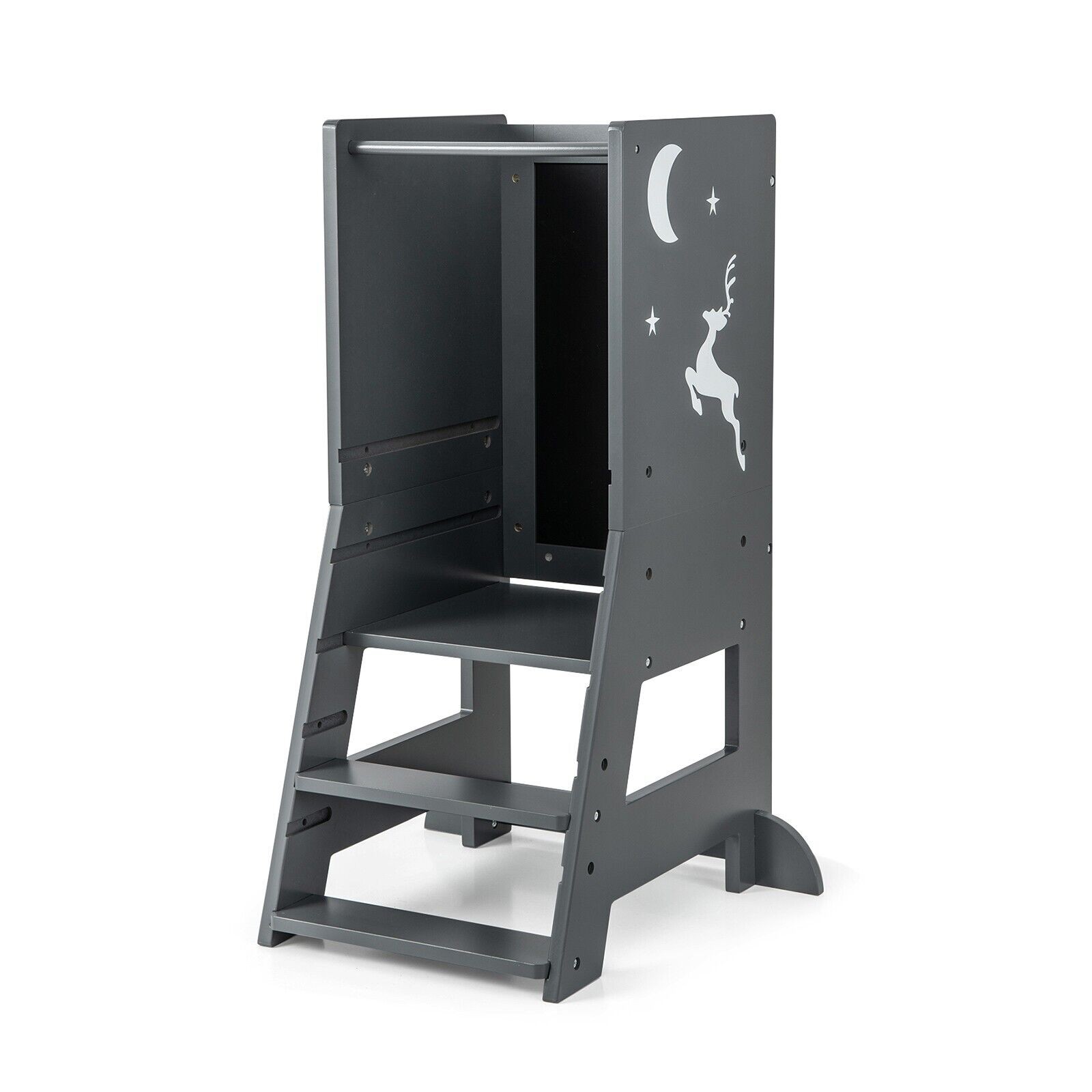 Kids Step Stool Toddler Kitchen Stool with Blackboard Lockable Handrail Grey