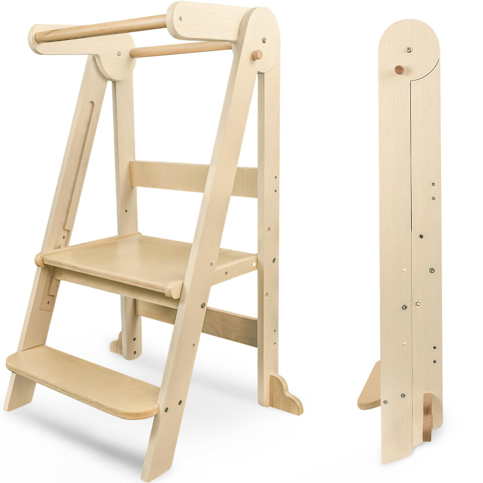 AIYAPLAY Kids Step Stool, Foldable Toddler Kitchen Stool, Adjustable Standing Tower
