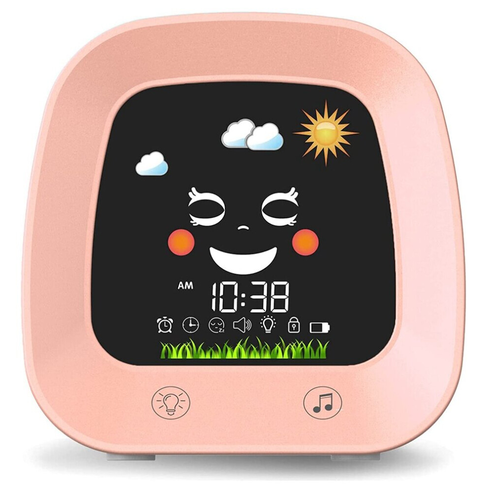 Kids Alarm Clock , Children's Sleep Trainer Clock with 4 Color Toddler Night Light, Sleep Sound Machine, Pink