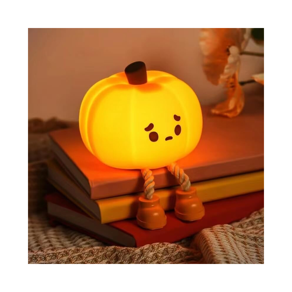 Pumpkin Night Light-Cute LED Pumpkin Lantern,Children's Silicone Dimmable Toddler Night Light,Rechargeable Bedside Faucet Light,Desk Decor and Gifts