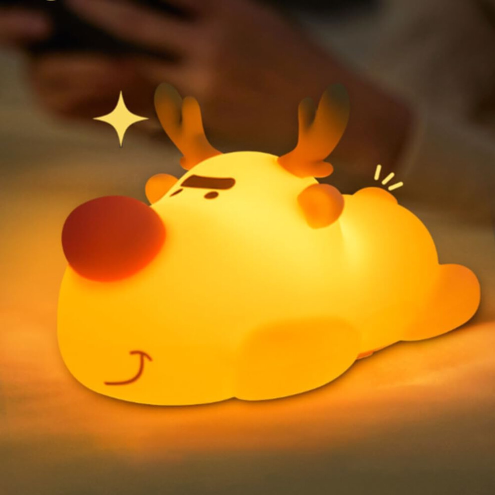 Christmas Night Light for Kids, Cute Reindeer 3 Level Dimmable Nursery Night Light, Silicone Touch Lamp, USB Rechargeable Toddler Night Light