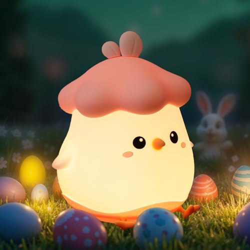 FECONN Silicone Chicken Night Light for Kids, Silicone Dimmable Lamp for Toddler, Girls Night Light Newborn Night Lamp, USB Rechargeable Kids Nightlight, Easter Gift Idea for Children's Room Decor