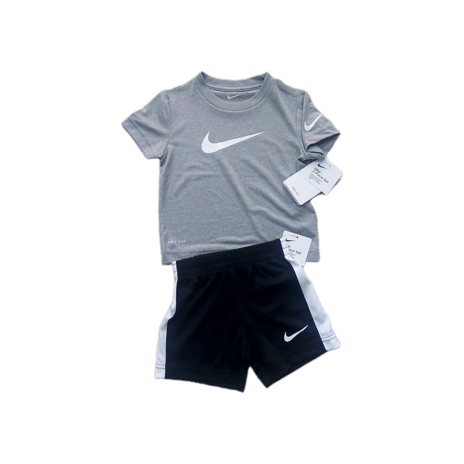 Nike Tick Grey Toddler boy T Shirt Black Shorts 2pc Set size 1 2 years NWT