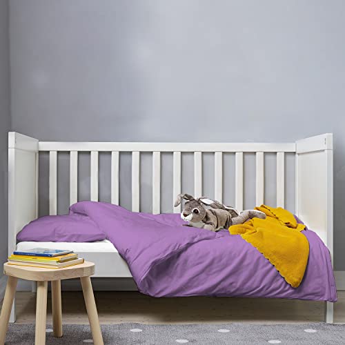 Pizuna 100% Cotton Crib Duvet Cover Purple, 400 Thread Count Long Staple Cotton Duvet Cover 100x135 cm, Soft Sateen Weave Toddler Bedding Set Include 1 Duvet Cover And 1 Baby Pillow Case
