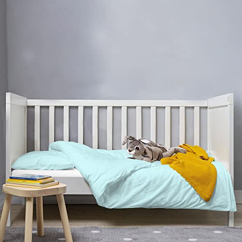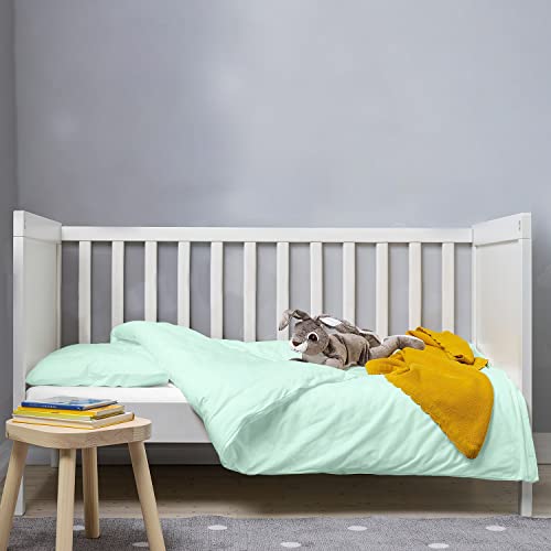 Pizuna 100% Cotton Crib Duvet Cover Mint Green, 400 Thread Count Long Staple Cotton Duvet Cover 100x135 cm, Soft Sateen Weave Toddler Bedding Set Include 1 Duvet Cover And 1 Baby Pillow Case