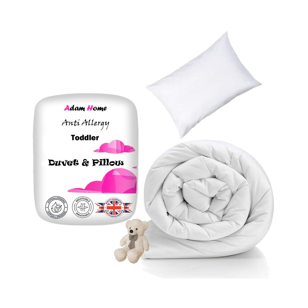 Adam Home 4.5 Tog Toddler Duvet and Pillow Set 100% Microfibre Anti-Allergy Lightweight Cot Bed (Duvet 120x150 cm) & (Pillow 40x60 cm) Hypoallergenic