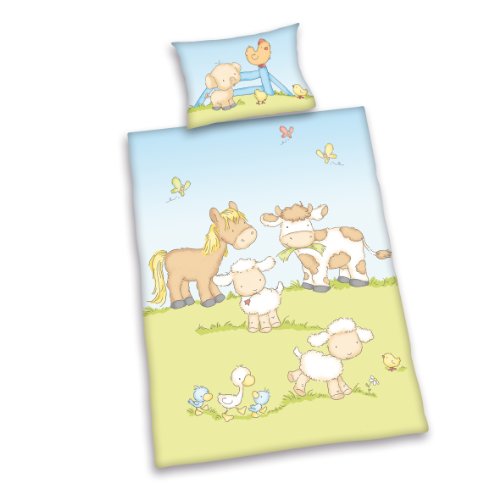 Herding BABY BEST Toddler Bedding Set, Reversible Motif Jana Farm Animals, Duvet Cover 100 x 135 cm, Pillow Case 40 x 60 cm, Cotton/Renforcé