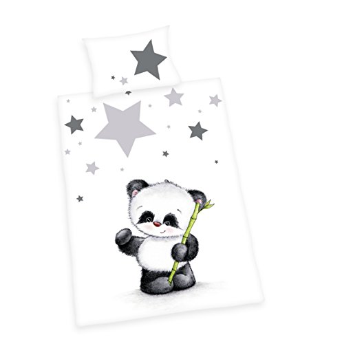 Herding BABY BEST Toddler Bedding Set, Reversible Motif Jana Panda, Duvet Cover 100 x 135 cm, Pillow Case 40 x 60 cm, Cotton/Renforcé