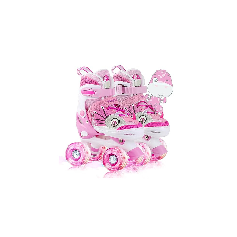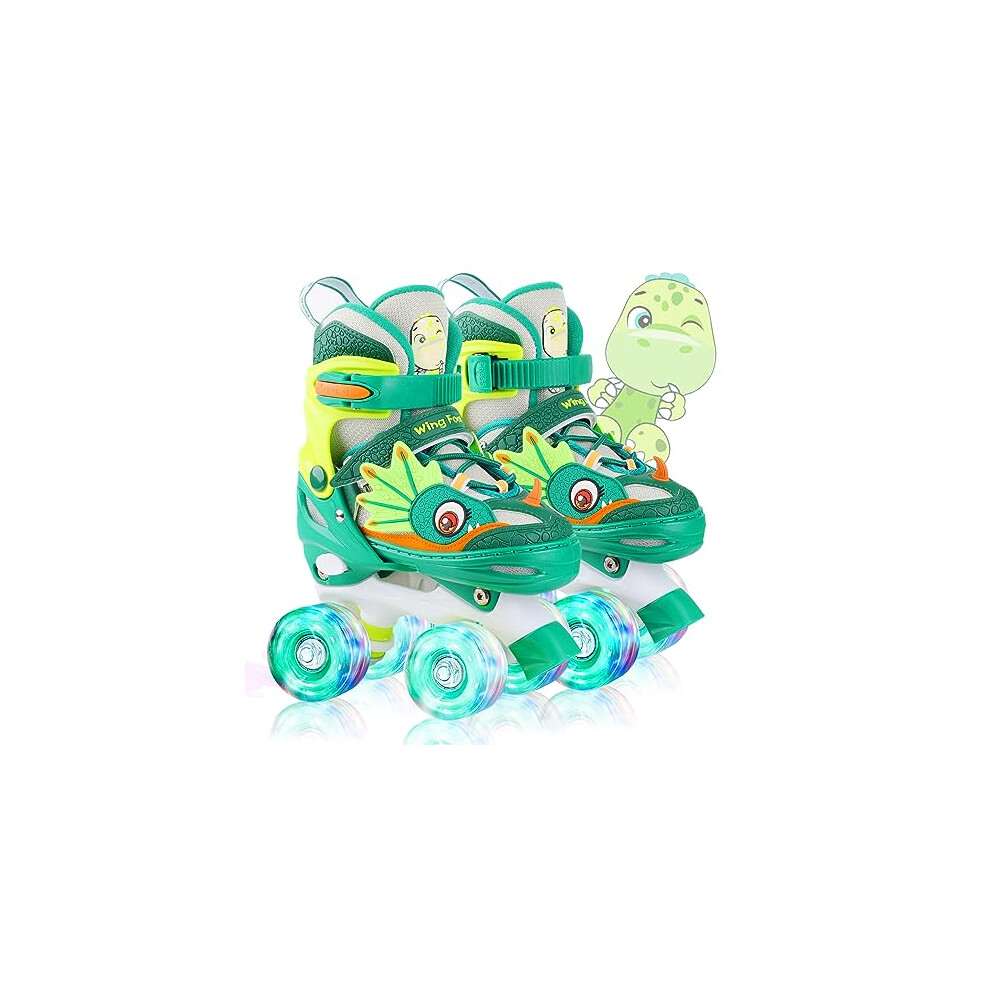 WESKIFAN Dino Kids Toddler Roller Skates for Boys Girls Dinosaur Quad Skating Shoes with Shiny Light up Wheels Adjustable Sizes Beginners rollerskates
