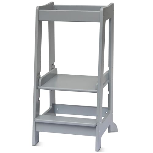 Stepup Baby Toddler Tower with Adjustable Step, Grey Montessori-Inspired Toddler Step Stool, Standing Tower for Kids, Fits Under Kitchen Counters, Adjustable for 18 Month - 5 Years