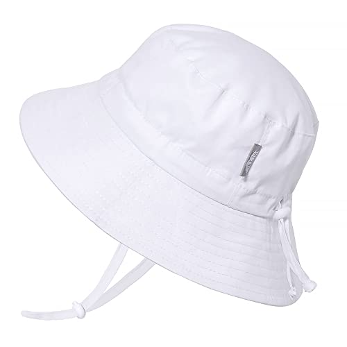 JAN & JUL Sun Protection Bucket Hat for Baby Toddler with Strap (M: 6-24 Months, White)