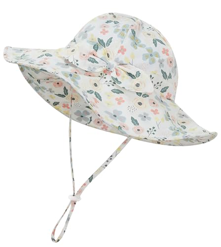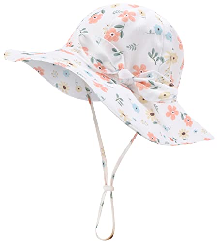 LACOFIA Baby Girls Sun Hat UPF 50+ UV Protection Toddler Cotton Beach Hat Infant Wide Brim Summer Visor Cap with Adjustable Chin Strap Light Pink Flowers 6-18 Months
