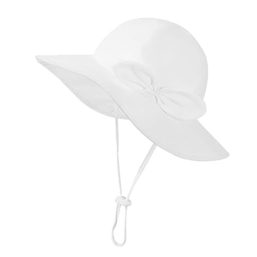 YMYDYFC Baby Girl Sun Hat Summer Beach Hats with UPF 50+ Toddler Infant with Wide Brim Strap Outdoor Bucket Hat White