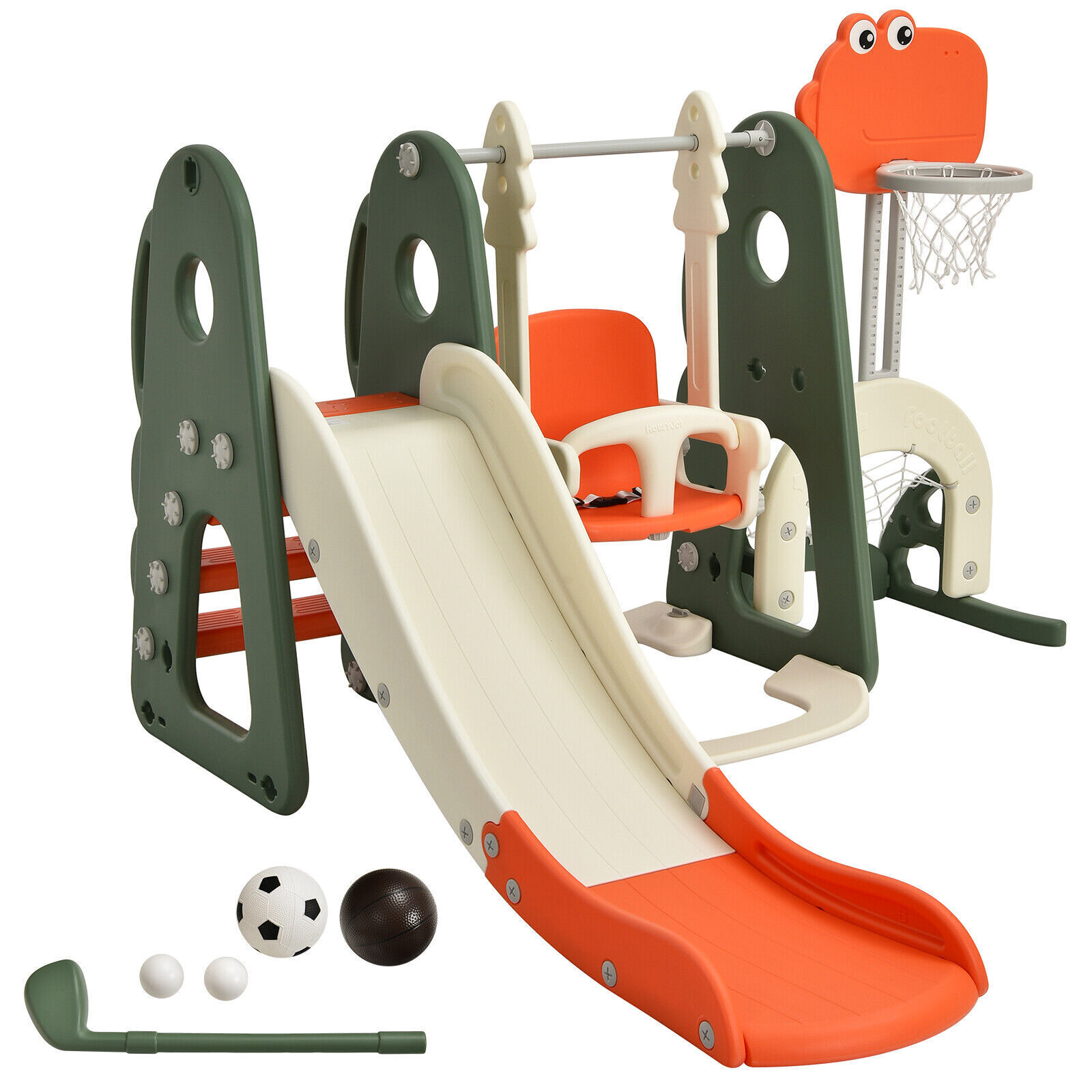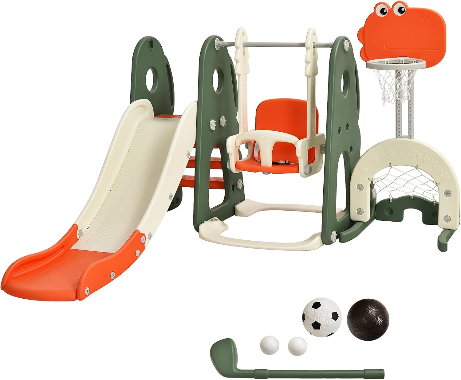 Toddler Slide and Swing Set 6 in 1 Kids Climber Basketball Football Golf Playset