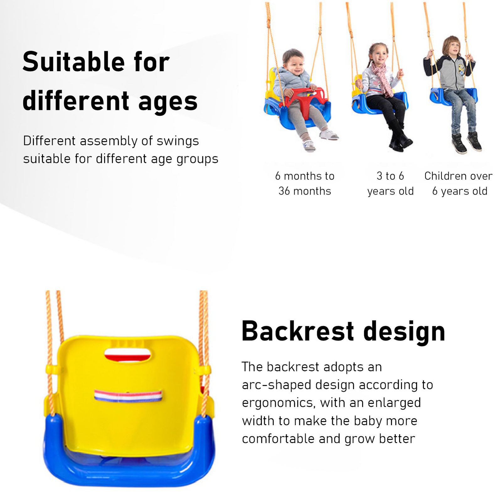 3 In 1 Toddler Swing Set Baby Swing Seat Anti Flip Snug Secure Detachable Kids