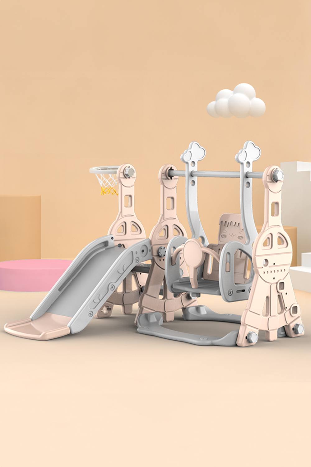 Living and Home Children Toddler Swing and Slide Set With Basketball Hoop in Pink
