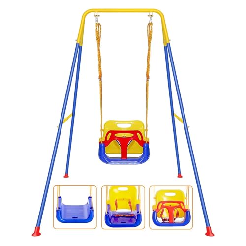 FCOUMY 3 in 1 Toddler Swing Set Folding Baby Swings for Garden Outdoor Indoor Heavy-Duty Kids Swing with Baby Seat for Baby/Children's Gift