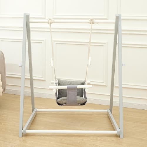 FUNLIO Wooden Swing Set for Toddlers 6-36 Months, Foldable Baby Swing Set with Durable Pine, Portable Toddler Swing with 4 Sandbags & Extension Straps, for Indoor/Outdoor/Backyard - Grey