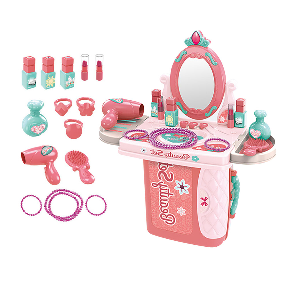 Kids Vanity Table Set with Mirror Toddler Makeup Accessories Pretend Play Toys for Girls Christmas Birthday Gifts