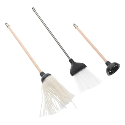 FRCOLOR Miniature Dollhouse Cleaning Kit 3pcs Set Black Mini Mop Dollhouse Broom Toilet Plunger and Pretend Play Accessories