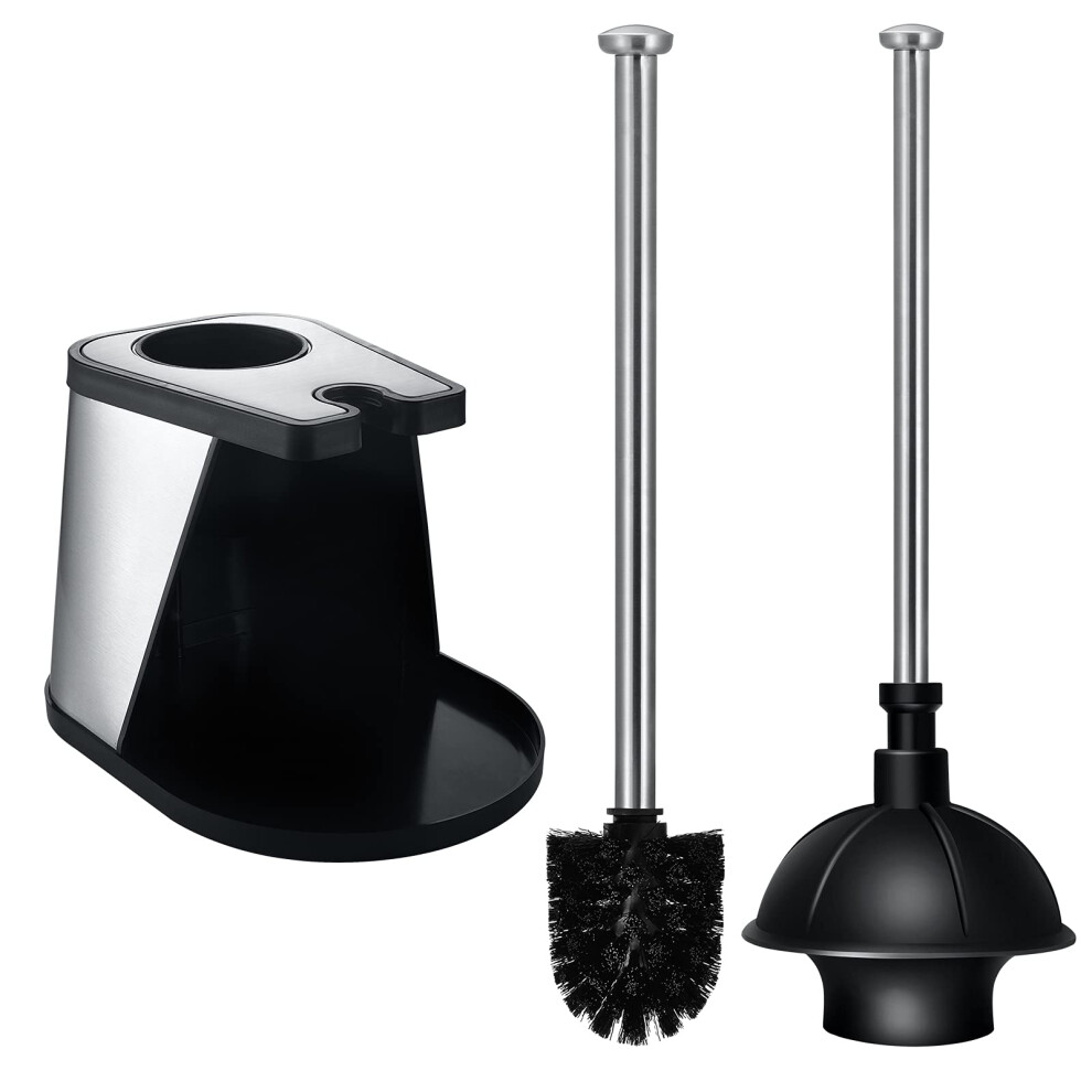 Toilet Plunger and Bowl Brush Combo for Bathroom Cleaning, Black, 1 Set