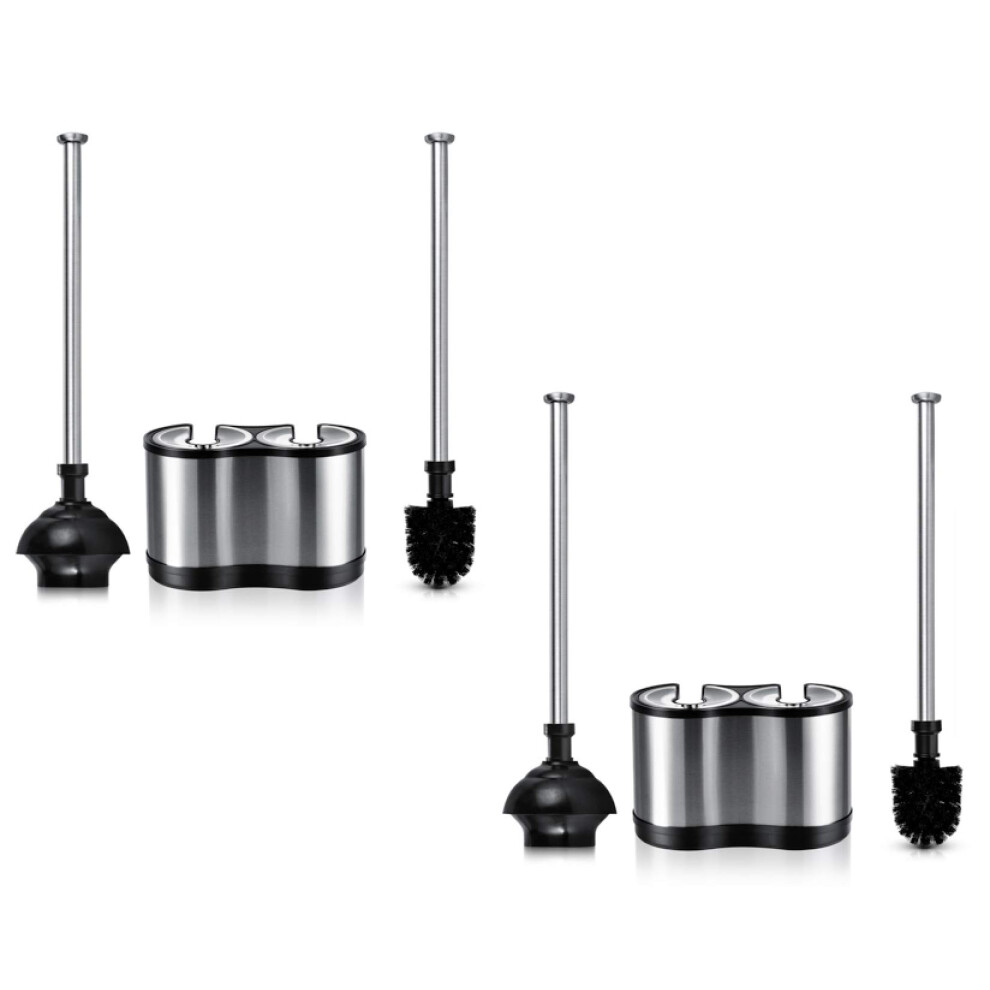 UMIEN 2 Pack Toilet Brush and Plunger Set 18-in - Updated 2025 No-Rust - Stainless Steel Design - Long Handles - with Freestanding Canister (Satin Nickel)