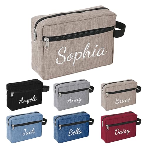 Personalized Men Toiletry Bag with Embroidered Name, Resistant Hanging Travel Mens,Toiletries Bag for Gym Shaving Organiser, Shower Bathroom Mens Toilet Bags Washbag with Handle (Khaki)