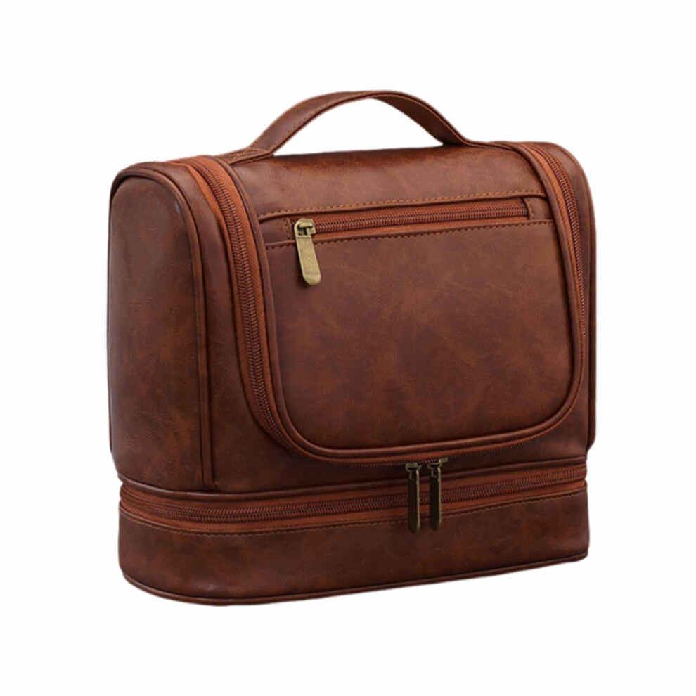 (brown) Toilet Bags For Men Vintage PU Leather Gifts For Dad Husband Boyfriend