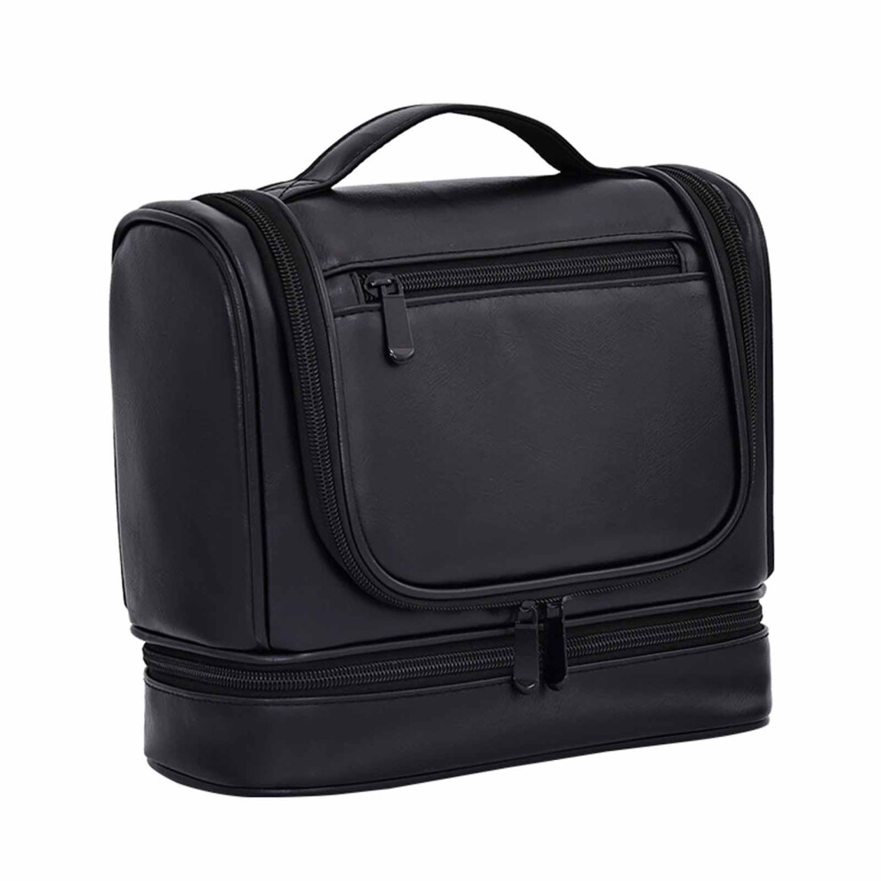 (black) Toilet Bags For Men Vintage PU Leather Gifts For Dad Husband Boyfriend